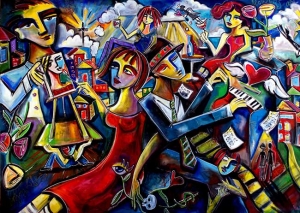 Jennifer’s art consists of bold vibrant color with a sense of whimsy. “I like painting exaggerated abstract figures from my imagination and use my work to illustrate the ups and downs of life’s beautiful journey. My goal is to share my heart openly and stay vulnerable on the canvas because I believe it keeps it real and relatable. My paintings are less about decoration and more about a message or deeper story. I have always been drawn to the duality of everything – you can’t have one without the other and it intrigues me.”