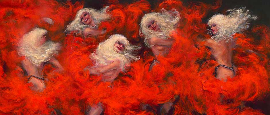 Fine artist TERRY RITTER has emerged as the one for the first time to capture the glamour of the Las Vegas showgirls in a series of one-of-a-kind paintings. Having performed herself as a dancer, singer and entertainer for many years on these very same stages, she has a unique perspective no other artist could bring to the subject. Her keen sense of emotion and knowledge of dance brings to each painting the artistry and the life force experienced by the performer herself.