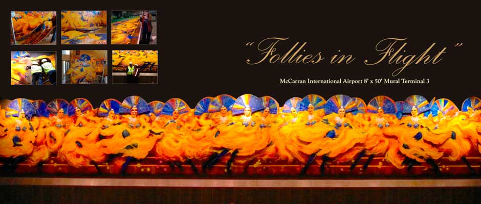 Terry has emerged as the most sought after artist of the Las Vegas entertainment world. Her 50 foot mural at the McCarran Airport International Terminal “Follies in Flight” welcomes visitors from all over the world and to see her work is to be transported to the excitement of the Las Vegas stage!